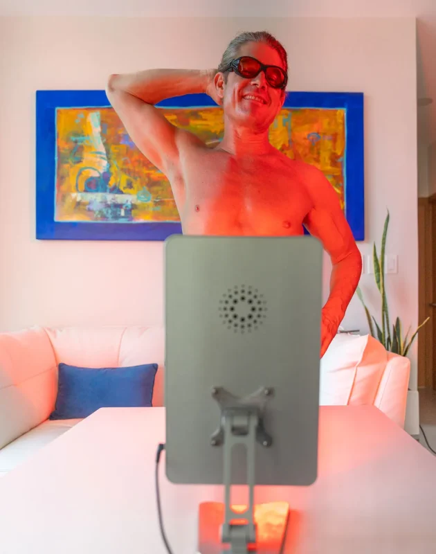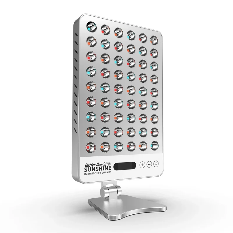 Our sunlamp features red light therapy, which nourishes your mitochondria, providing anti-aging benefits for your skin and hair, and offering pain relief for your muscles and joints.