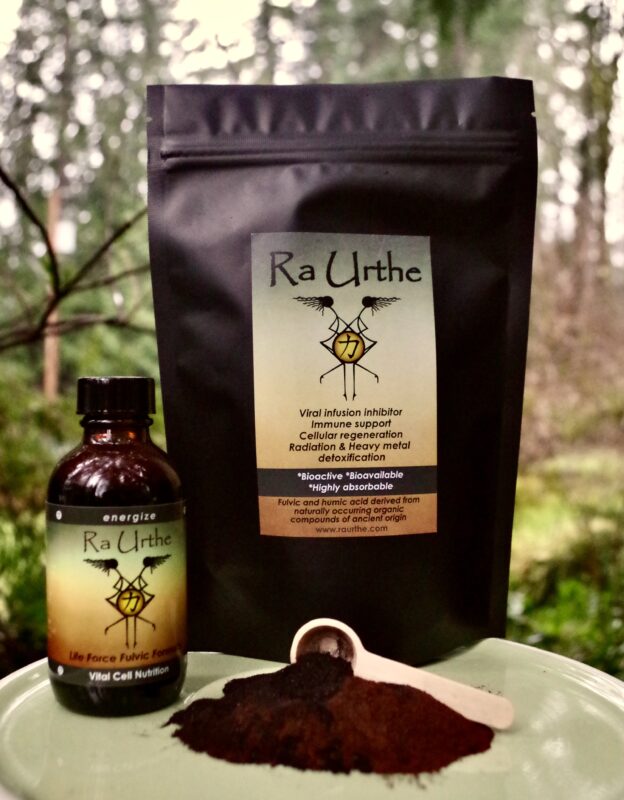 Ra Urthe offers Life force Fulvic formula in a concentrated liquid. It is a synergistic blend of Fulvic dominant and Humic acid in unadulterated premium mountain spring water. This formula is pure, potent and safe having cleansing, regenerative, restorative and immune boosting properties. Highly effective for removing heavy metals and radiation out of the body and recharging your cells.